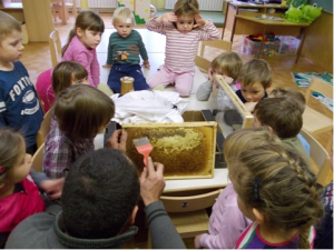 Postrgal je med s panja.