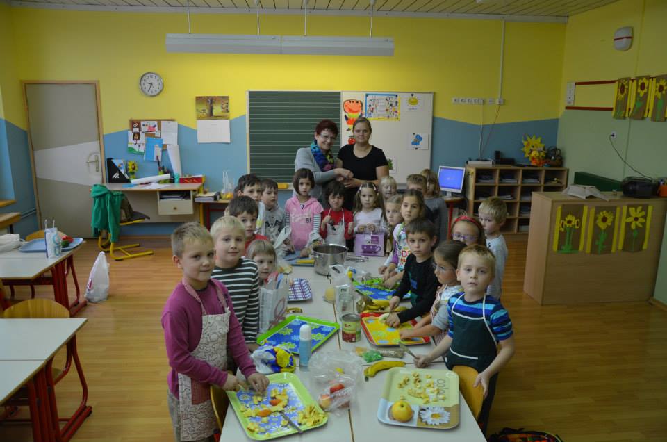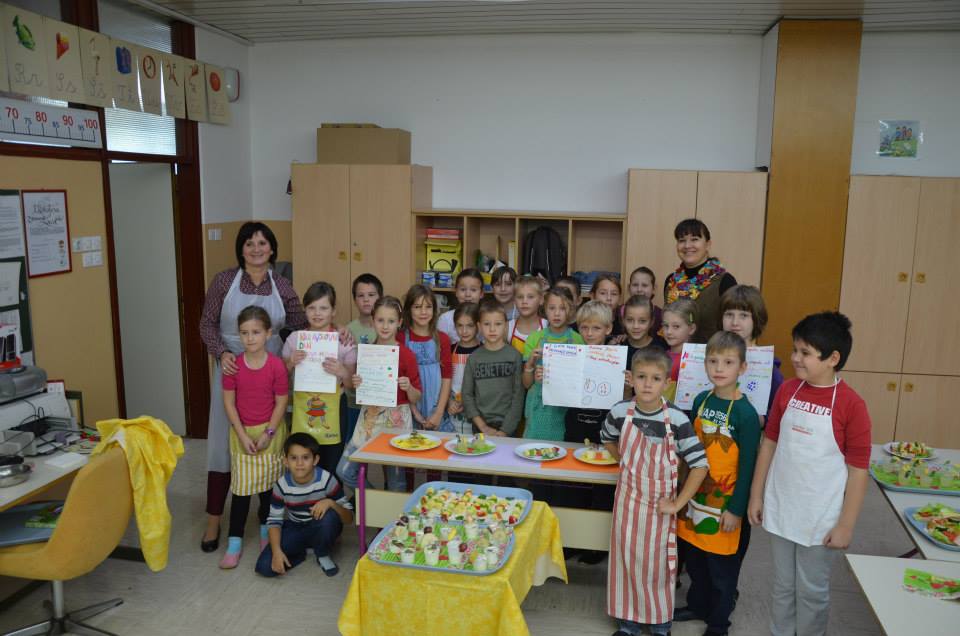Prvi razredi so poslušali pravljico o hrani, nato pa izdelovali sadna nabodala. Ostali razredi so se prav tako trudili po svojih najboljših močeh. Tako so pripravljali sadne in zelenjavne napitke ter pisali recepte, sestavljali zdrave prigrizke, kuhali zelenjavno juho, se spoznavali z zdravilnimi zelišči, pripravljali sadni krožnik, izdelovali različne piramide in plakate za shemo šolskega sadja, spoznavali tropsko in sredozemsko sadje, pripravljali češki krožnik, nekateri so se posvečali fotografiji, tako da so sadje in zelenjavo fotografirali z različnih kotov in nastale so prave umetniške fotografije, ki smo si jih ob koncu dneva lahko ogledali na razstavi …