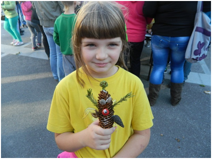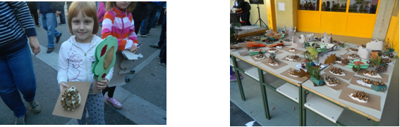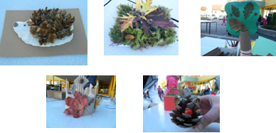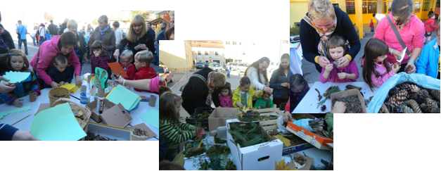 Potem so se lahko lotili dela. Ustvarjali so skupaj s svojimi starši in učiteljicami, iz gozdnih plodov, ki so jih nabrali skupaj s starši na jesenskih potepanjih po gozdu. Svoje spretnosti in ideje so lahko prikazali v 5 delavnicah: