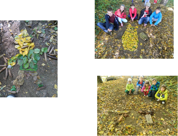 V naravi smo tudi ustvarjali. Razdeljeni v manjše skupine, so si otroci v gozdu poiskali najrazličnejše materiale in jih uporabili v prav posebnih umetninah. Vse je bilo odvisno od njihovih zamisli. Raziskovali so naravo, pobirali najrazličnejše plodove, listje, oblikovali veje, skorjo,…pri tem pa neizmerno uživali. In rezultati – najprej veliko zadovoljstvo, potem zanimivi izdelki, ki so predstavljali del narave. Nismo jih odnašali, temveč pustili, da bodo postali del narave, da si jih bodo lahko ogledali tudi drugi obiskovalci gozda, jih opazile živali in se bodo z naravo tudi spreminjali.