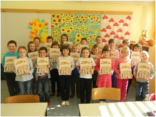 Skozi vso šolsko leto smo v nadaljevanjih pridno brali knjigo A. Pinterič, Veliki nemarni škornji. Vsak otrok je dobil svoj izvod in ga po svoje tudi ilustriral. Nastali so zelo zanimivi in raznoliki izdelki.