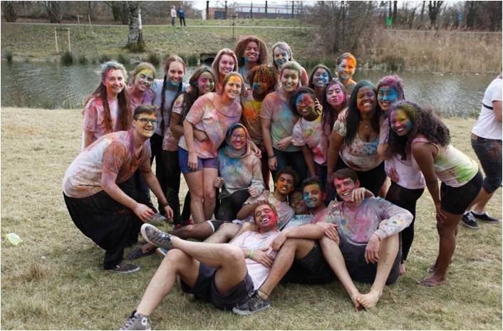 Slika iz enega takih dogodkov, indijskega praznika barv Holi.