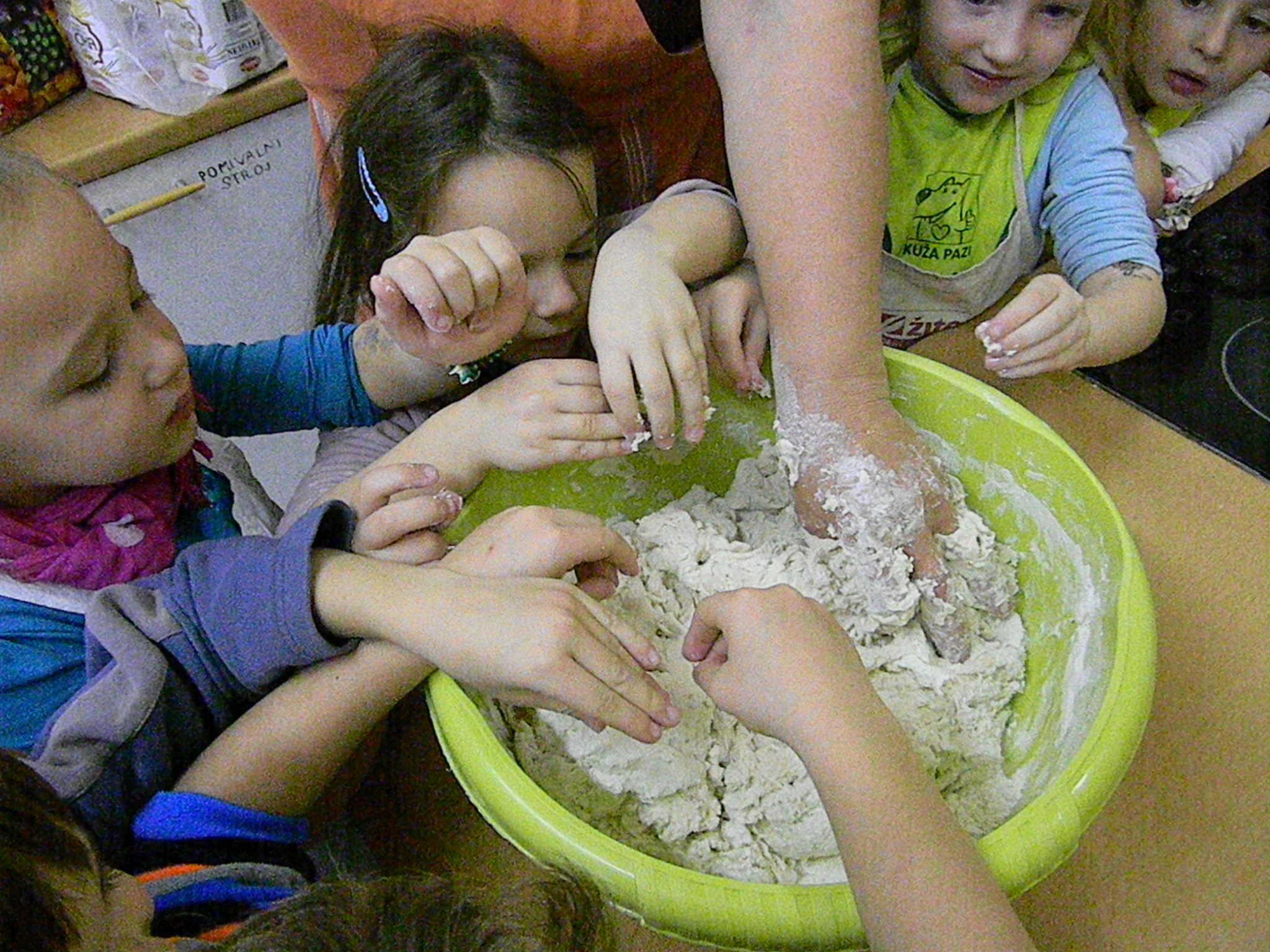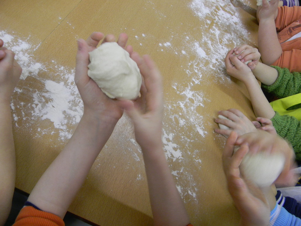 Učence je seznanila s sestavinami, ki jih za to potrebujemo. Skupaj smo zamesili testo, oblikovali žemljice, ki so še nekaj časa vzhajale, nato pa smo jih še spekli.