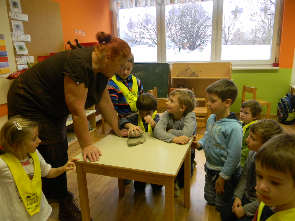 Na zelo zanimiv način je učence poučila, kako pridelamo moko. Spodbudila jih je, da so sami povedali, kako jo dejansko pridelamo, nato pa jim to tudi nazorno pokazala s kamni, ki so jih učenci uporabili kot mlinske kamne, ki meljejo zrnja.