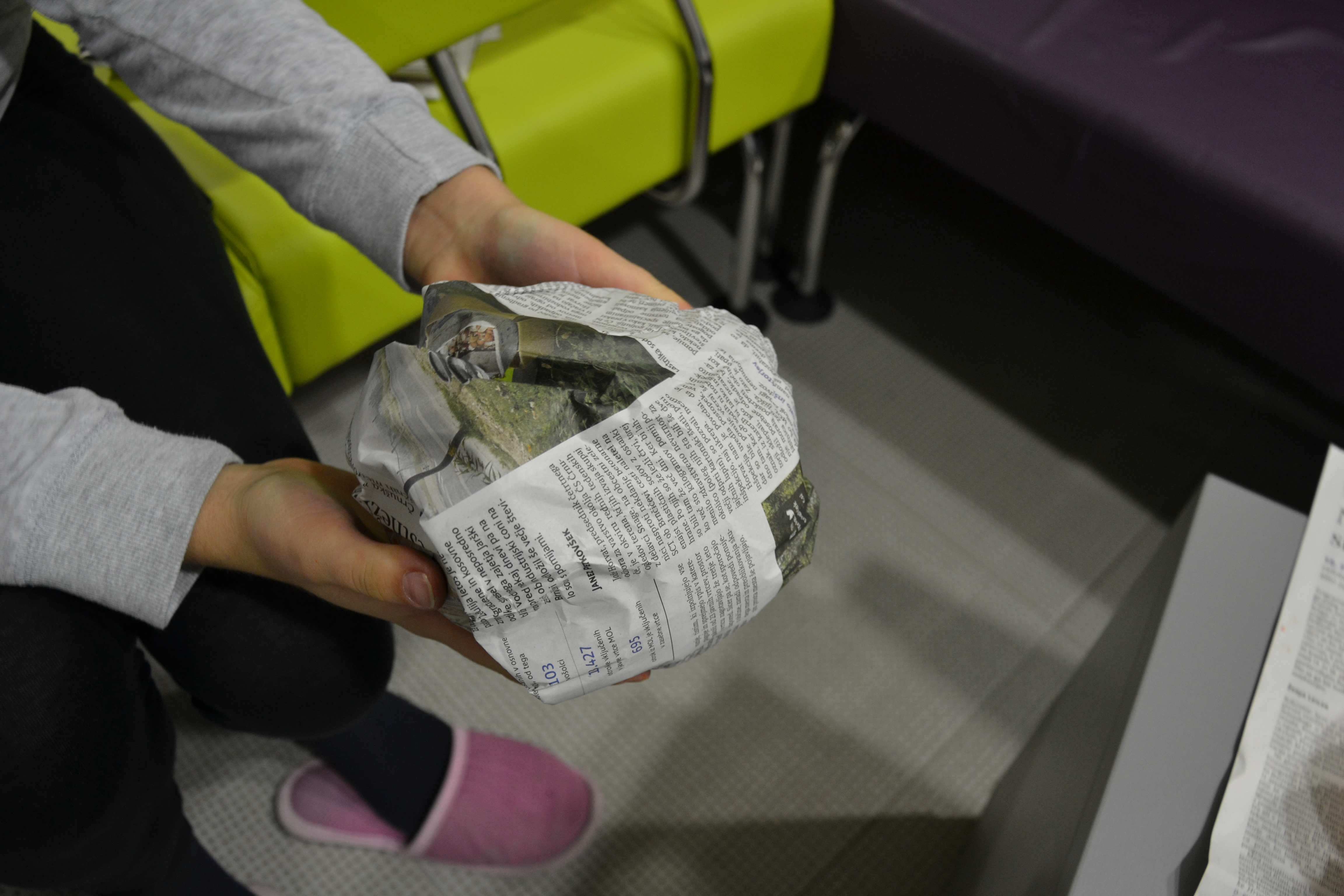 Časopisni papir zmečkamo v kroglo velikosti buče.