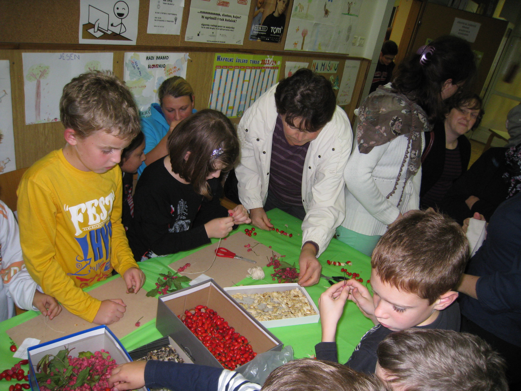 Popoldne bodo otroci na stojnicah, ki bodo v atriju šole, svoje izdelke predstavili staršem in krajanom. Starše bodo vključili v delavnice, kjer bodo preizkušali hrano z različnimi čuti, izdelovali nakit iz plodov in semen, oblikovali buče ter si ogledali naj pridelke iz Koćanije. Na festival smo povabili tudi nekatere lokalne proizvajalce, kmete in čebelarja. Le-ti bodo razstavljali in predstavljali svoje proizvode.